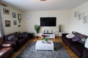 Fabulous large front reception; semi solid oak flooring; large window opening fills the room with light showcasing the generous floor area on offer; semi sold oak flooring; TV point.