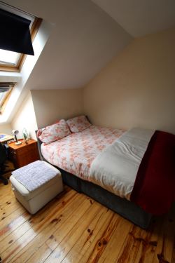 Double bedroom located to the front of the property; twin Velux window openings offering a good source of natural light; polished pitch pine flooring; potential for fitted wardrobe space.