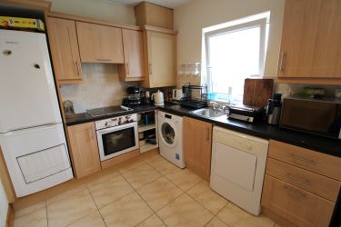 Nice bright open plan kitchen/dining; two window openings fill the room with light; maple shaker style fitted kitchen offers good storage options from the wall and base fitted units; good worktop space with tile splashback; four plate ceramic hob with over beneath; plumbed and space provision for washing machine, dryer and fridge freezer; stainless steel sink unit with window aspect; tile flooring opens up into a well-defined dining area offering good space for a well-proportioned dining suite.